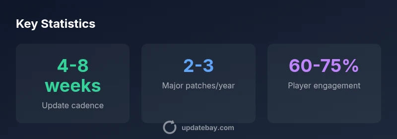 Updates usually follow a mix of smaller patches every 4-8 weeks and 2-3 major patches per year, though schedules can shift with holidays. This cadence is observed across 2026 by Update Bay Analysis.