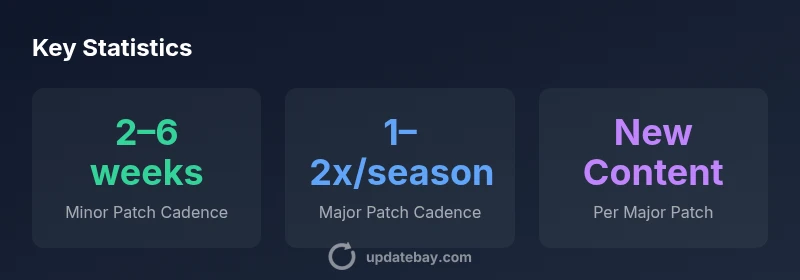| Minor Updates Cadence | "2–6 weeks" | Balance tweaks, bug fixes | Seasonal variation |