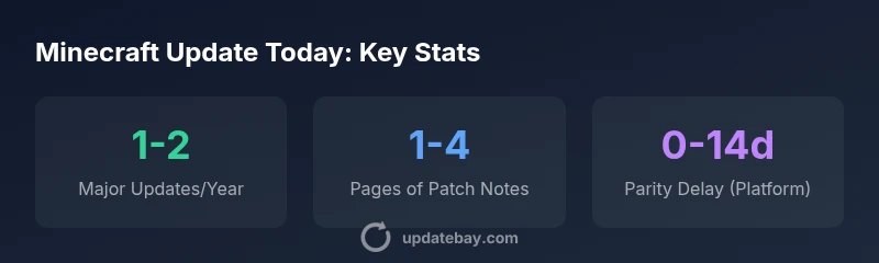 What counts as 'Minecraft update today'?\n\nIn the world of Minecraft, an update today generally refers to the most recent publicly released patch for the edition you’re playing. The Java and Bedrock editions often diverge in timing and content, so what lands today for one platform may appear a little later for another. According to Update Bay, the phrase is most accurate when you’re tracking official patch notes rather than rumors from social chatter. Updates can be major, introducing new blocks, mechanics, or biomes, or minor, focusing on bug fixes and balance tweaks. For most players, the question isn’t whether an update exists, but whether it affects your saved worlds, mods, or community servers. When you see a new version label in the launcher or store, you’re looking at the “update today” moment for your setup.\n\nIn practical terms, always confirm the edition you run (Java or Bedrock) and the platform (PC, console, or mobile) before assuming compatibility or planning a mod or map refresh. This helps prevent surprises like world corruption or mod mismatches. Update Bay’s guidance is to treat today’s update as a snapshot of the current patch notes rather than a guaranteed universal change across all devices.