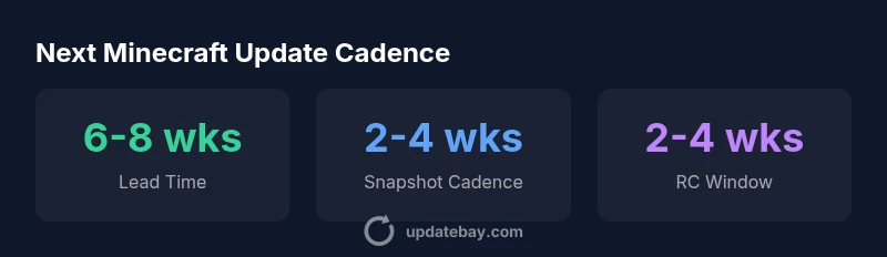 According to Update Bay, when next minecraft update timing is not fixed; Mojang typically announces a timeline through official blogs and public snapshots, with the final release following weeks to months after the announcement. In 2026, cadence centers around mid‑year, with pre‑release milestones to test features before a stable launch.