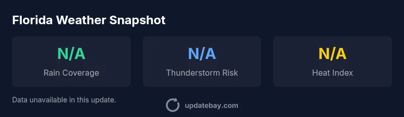 According to Update Bay, the latest update on weather in florida shows a lingering wet pattern across the peninsula with scattered thunderstorms, especially in central and southern Florida, and a potential for localized flooding in flood-prone areas. This outlook emphasizes the need to stay alert for rapidly changing conditions and to follow local alerts.
