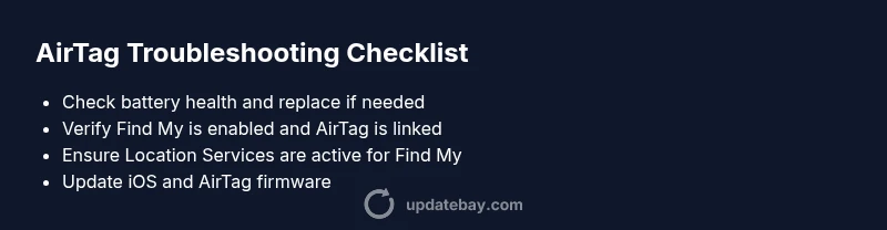 Often the issue is a weak Find My signal, a dead AirTag battery, or outdated software. System settings and privacy controls can also affect updates. Start with battery replacement and Find My checks before deeper troubleshooting.