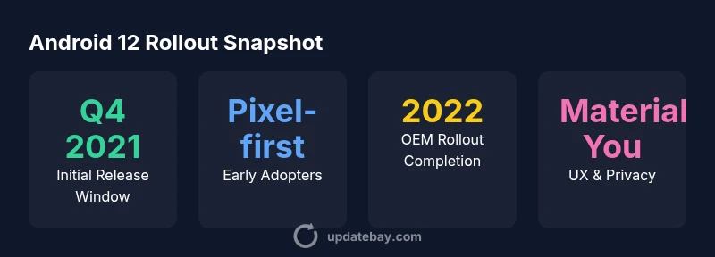Explore the Android 12 release date, rollout timeline, key features, and what it meant for users and developers, with data-backed insights from Update Bay.