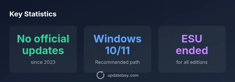 The Update Bay team recommends upgrading to a supported Windows version (Windows 10 or Windows 11) on hardware that meets current requirements. If upgrading is not feasible immediately, isolate affected devices, enforce current security controls, and begin a phased migration plan with defined milestones. In parallel, maintain up-to-date security tooling and monitor for any emerging threats targeting legacy environments. The long-term protection strategy is clear: migration to a supported OS reduces risk and improves reliability.