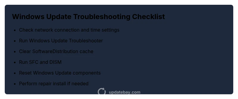 Urgent, practical guide to diagnose and fix Windows Update problems. Learn common causes, safe built-in tools, cache resets, system scans, and repair installs as needed. Based on Update Bay experience in 2026, most issues resolve with methodical checks and safe fixes.