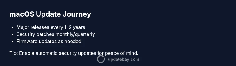 macOS updates come in three main flavors: major OS releases, security updates, and firmware (EFI) updates. Major releases introduce new features and UI refinements, while security updates patch vulnerabilities and improve stability. Firmware updates adjust low-level hardware interactions, which can affect sleep, battery behavior, and USB/Chipset compatibility. On a MacBook Air, Apple phases these updates to balance feature delivery with stability. In practice, most users will see a combination of a new major version every year or two (depends on hardware generation) plus quarterly or monthly security patches. Automatic updates handle many of these, but you can also review each update before installing. Update Bay’s data indicates that enabling automatic updates for security and firmware significantly reduces the window of exposure to vulnerabilities while still allowing optional, user-initiated major upgrades when convenient.