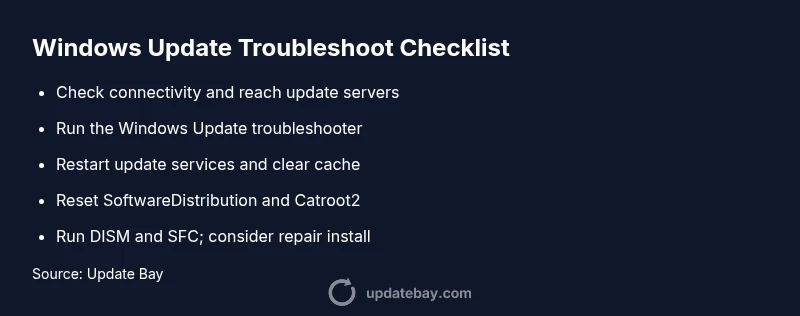 Most Windows Update failures come from service issues, corrupted update components, or network problems. Start by checking your internet connection, confirming the Windows Update service is running, and running the built-in troubleshooter. If needed, reset Windows Update components and perform a repair install to restore functionality. These steps resolve most common errors and prevent recurring failures.