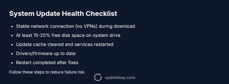 Updates can fail for a variety of reasons, and knowing the most frequent culprits helps you triage rapidly. The leading causes include unstable internet connections or VPNs that drop during download, corrupted update cache or components, insufficient disk space, and outdated drivers or firmware that block patch application. Other factors include conflicting security software, incorrect regional settings, and recent system changes that require a clean reboot to complete. Update Bay analysis shows that addressing these issues in the right order dramatically increases success rates.