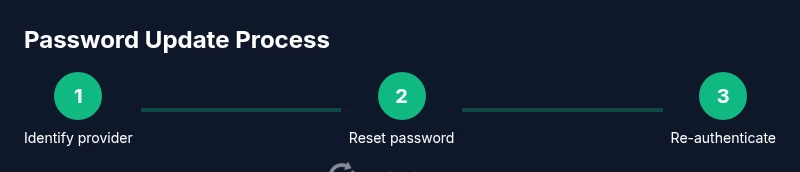 Open the provider’s password reset page, sign in if possible, and create a strong new password. Complete any 2FA required during the process.