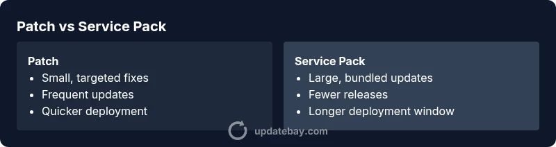 Choose patches for rapid, targeted fixes and minimal downtime. Opt for service packs when you need a consolidated, tested package that delivers broad improvements in one deployment.
