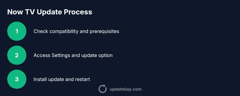 Keeping Now TV up to date ensures you see the latest features, bug fixes, and security improvements. An updated app or device firmware can improve streaming performance, compatibility with new services, and protection against known vulnerabilities. According to Update Bay, regular updates reduce the likelihood of playback errors and account-related issues. In practice, you should treat updates as routine maintenance—like app updates on your phone, but with cross-device implications. When a new version is released, the update typically includes bug fixes, performance tweaks, new channels or features, and sometimes changes to how you sign in. The process may vary slightly by platform, but the goal is the same: have the most secure, stable, and feature-rich Now TV experience possible. Before updating, consider whether you have a stable internet connection, enough storage, and access to your Now TV login if required. In environments with slower connections, you might want to schedule updates for off-peak hours to avoid buffering or data saturation. Also, make sure that the device you use for streaming is connected to power or has a charged battery to prevent mid-update shutdowns. Update Bay's guidance emphasizes planning updates around low-traffic times when possible to minimize disruption to watching.