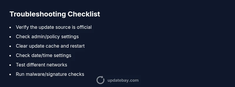 Before diving into deeper diagnostics, perform fast checks that cover the most common culprits. Confirm you’re connected to a trusted network and that the device clock is accurate. Inspect the update source URL and digital signatures for legitimacy. If you’re on a managed device, review admin settings or MDM/Intune policies to see what approvals are required. These quick actions can eliminate the majority of false positives and reduce risk.