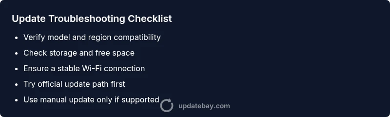 If you're asking why is update kindle greyed out, the most common causes are regional restrictions, parental controls, insufficient storage, or an unsupported device firmware. Start by verifying Wi‑Fi, freeing space, and checking device eligibility for updates. If these steps don’t help, try a manual update or USB sideload. Update Bay recommends addressing the issue promptly to avoid missing security patches.
